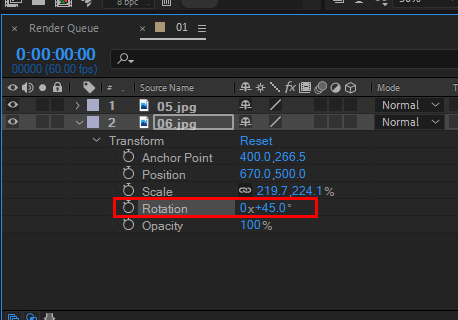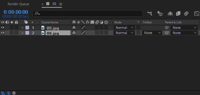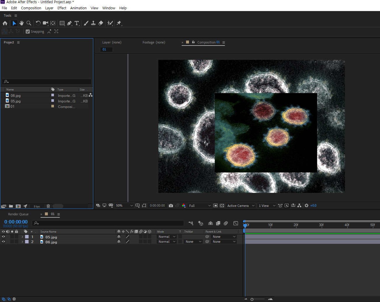 1)새로운 컴포지션을 생성하고 두개의 이미지를 추가하였습니다.