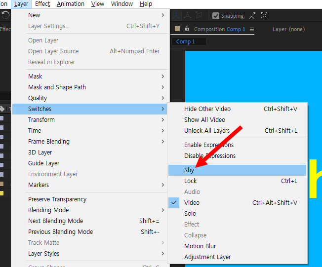 에프터이펙트(after effect)에서 shy layer 사용하기