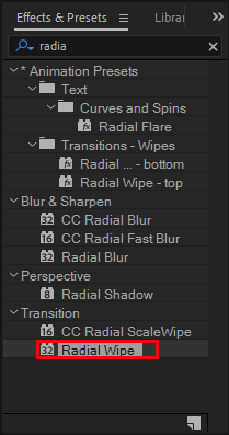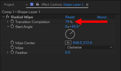 2)shape layer에 radial wipe 이펙트를 추가합니다.