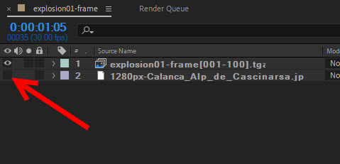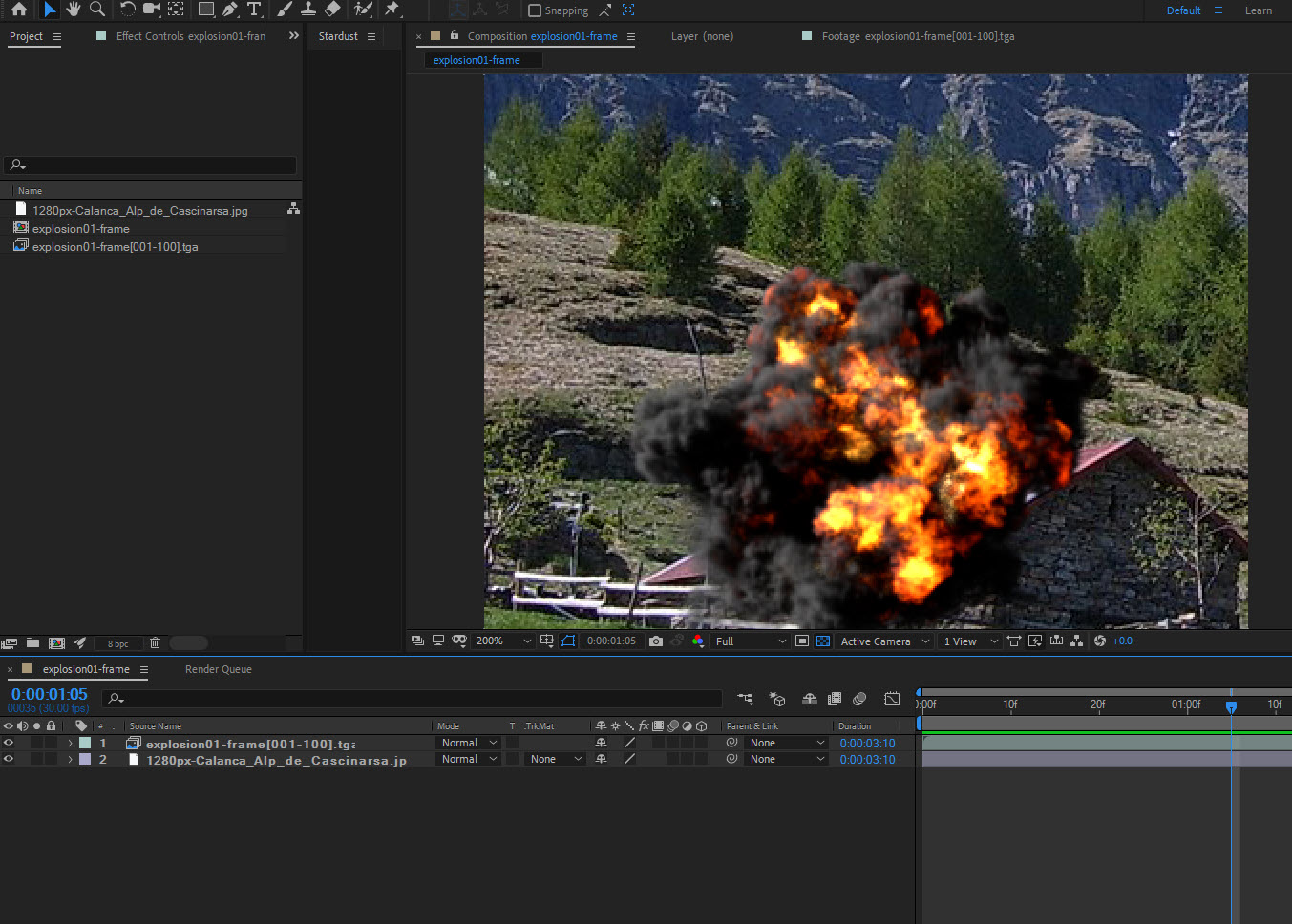 1)예에서 배경 이미지와 이미지 시퀀스가 컴포지션을 구성하고있습니다.