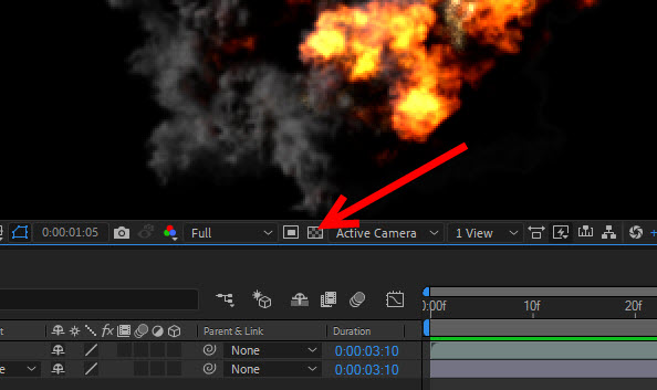 3)컴포지션 패널 하단에 있는 toggle transparency grid를 활성화합니다.