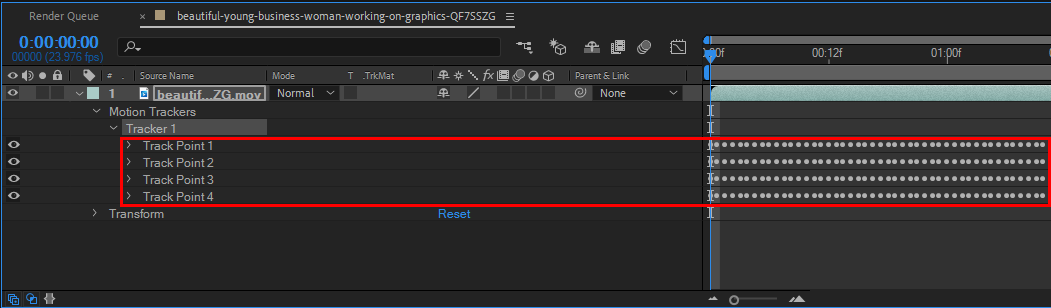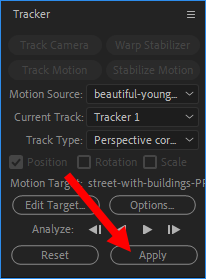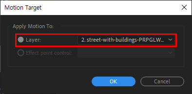 2)선택한 동영상이 모션 소스(motion source)로 설정된것을 확인할수있습니다. track type에서 perspective corner pin를 선택합니다.