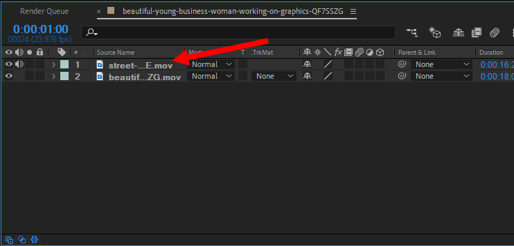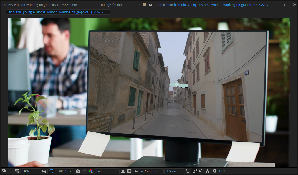 8)corner pin으로 설정한 영역에 표시할 두번째 동영상을 컴포지션에 추가합니다.