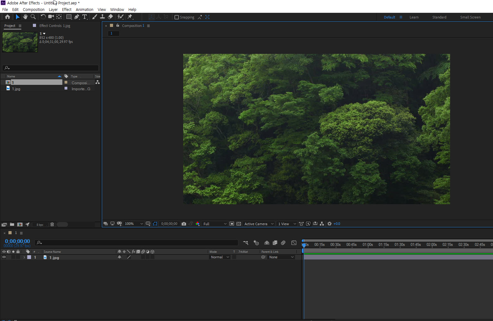 1)새로운 컴포지션을 생성하고 배경 이미지를 추가합니다.