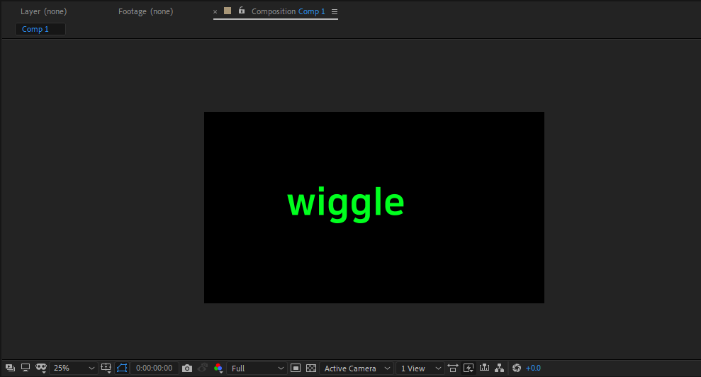1)wiggle 함수를 추가하려는 오브젝트를 생성합니다. 예에서는 텍스트 레이어를 생성하였습니다.