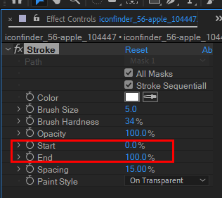8)stroke의 start 및 end 속성에 키를 추가하여 아웃라인의 stroke 애니메이션을 만들수있습니다.