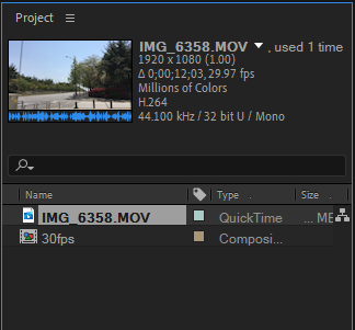 4)컴포지션에서 푸티지의 시간이 3배 연장된것을 확인할수있습니다.