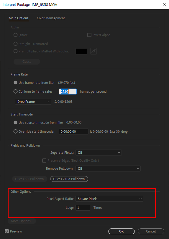 3)하단의 other options에서 loop times에 반복재생 횟수를 입력합니다.