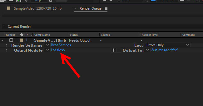 6)render queue의 우측에서 render를 클릭하면 오디오를 출력 및 저장합니다.
