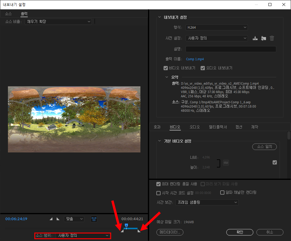 미디어인코더(media encoder)에서 사용자 지정 구간 렌더링(출력하기)