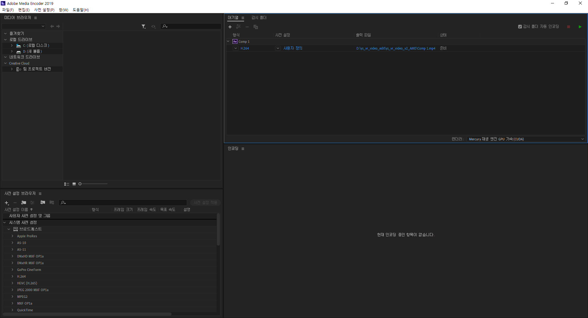 1)미디어인코더에서 동영상 또는 에프터이펙트의 프로젝트 파일을 가져오기합니다.