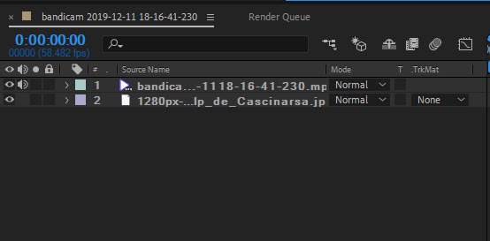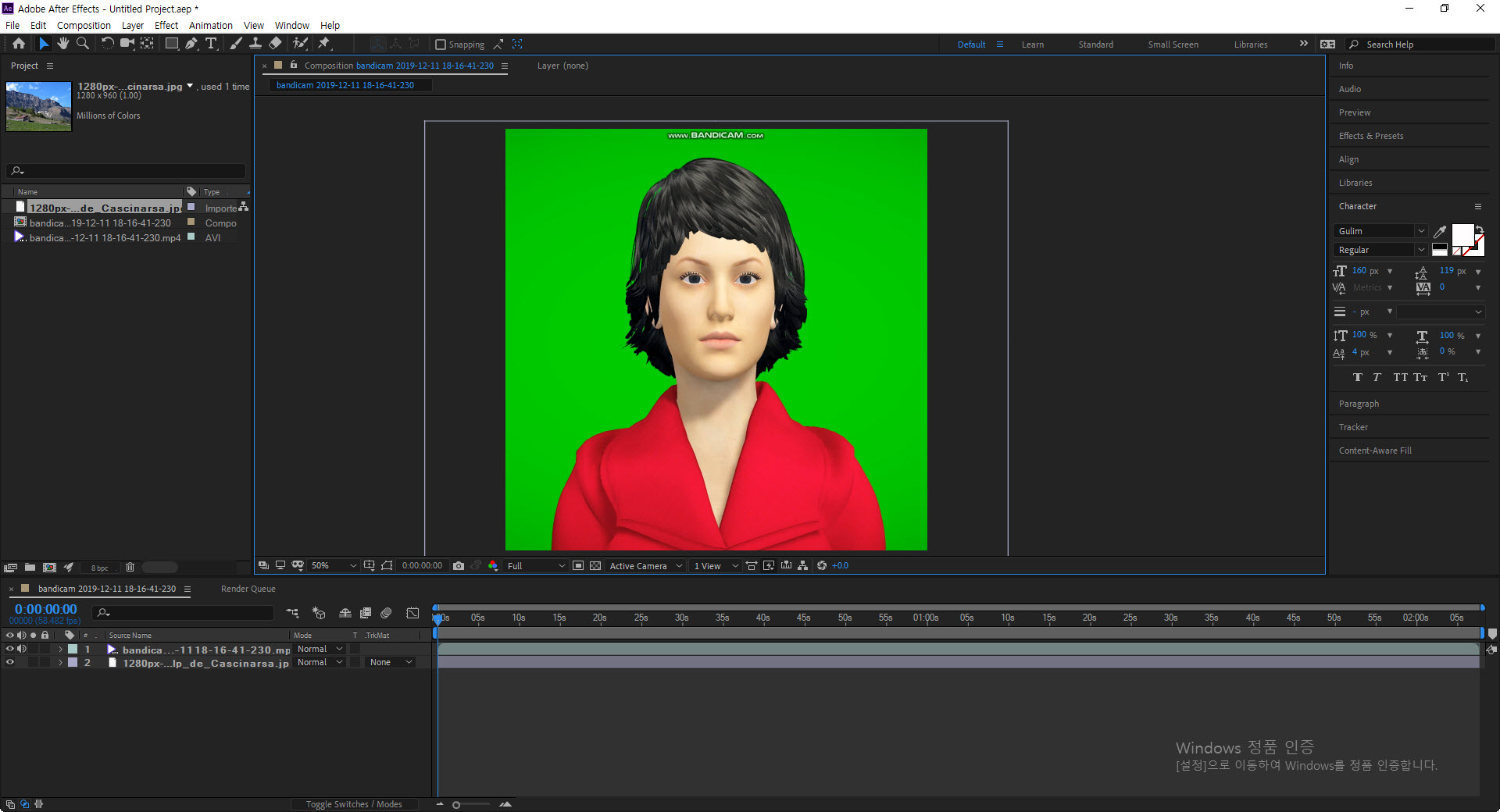 1)컴포지션을 생성하고 피사체의 애니메이션을 포함한 동영상 및 배경사진을 추가합니다.
