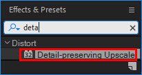 5)스케일을 키우면서 디테일을 최대한 보존하려면 동영상에 detail-preserging upscale 이펙트를 추가합니다.