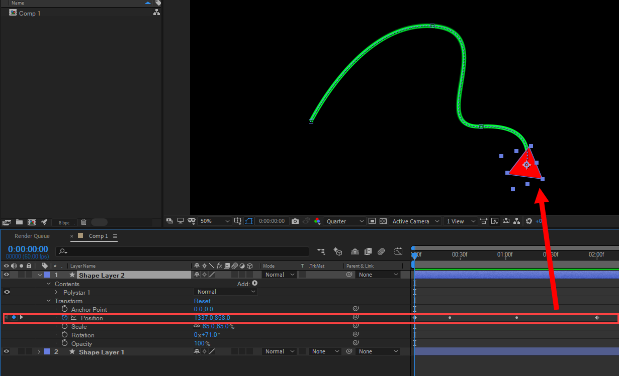 2)컴포지션에 패스를 생성합니다(shape layer1)