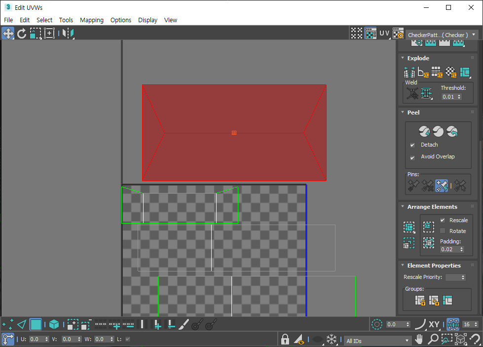 12)UV editor에서 planar 맵핑된 지붕 element를 확인할수있다.