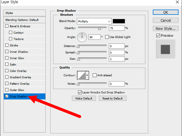 9)창문 프레임 레이어에 drop shadow 레이어스타일을 설정한다.