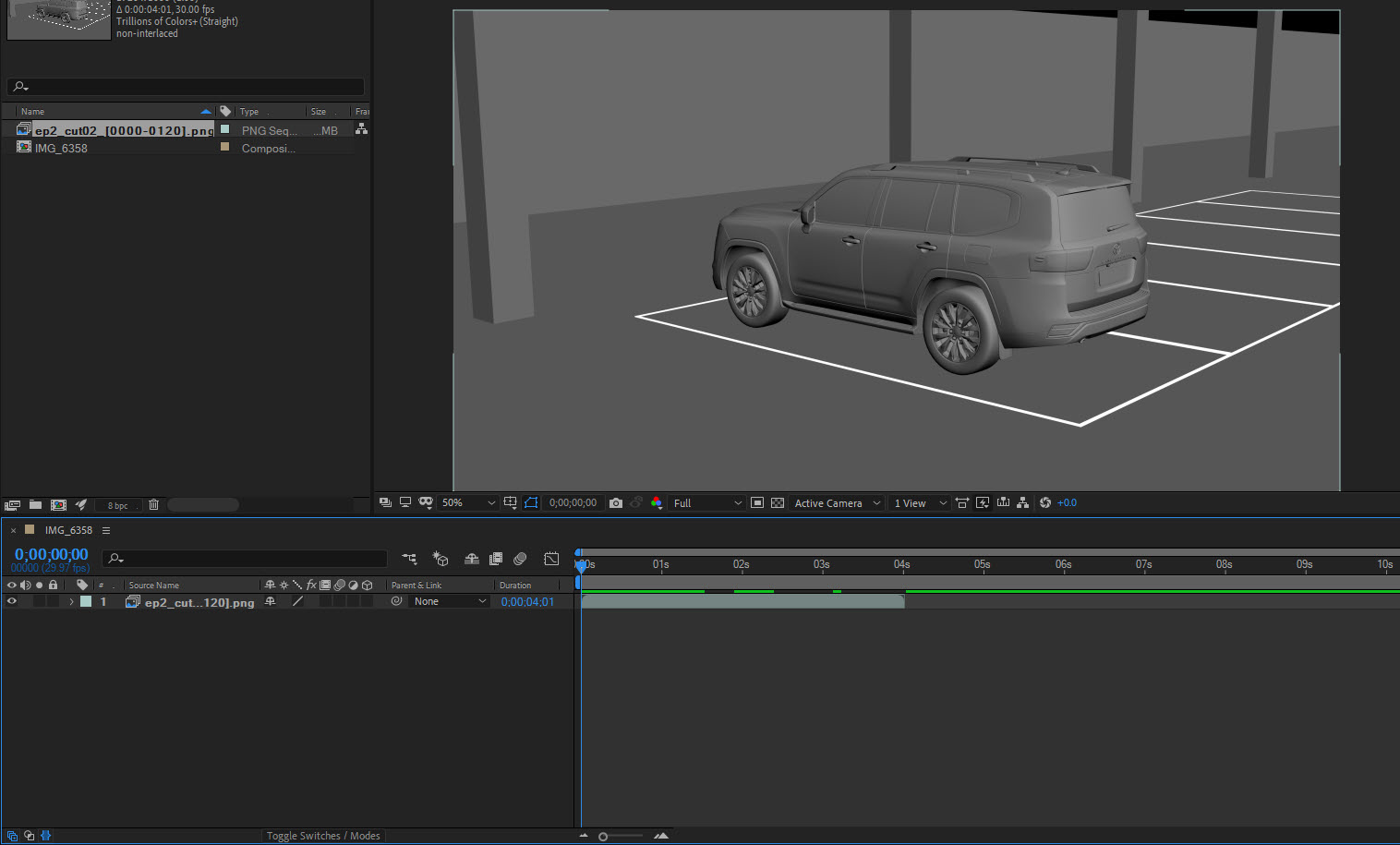 1)새로운 컴포지션을 생성하고 동영상 또는 푸티지를 추가합니다.