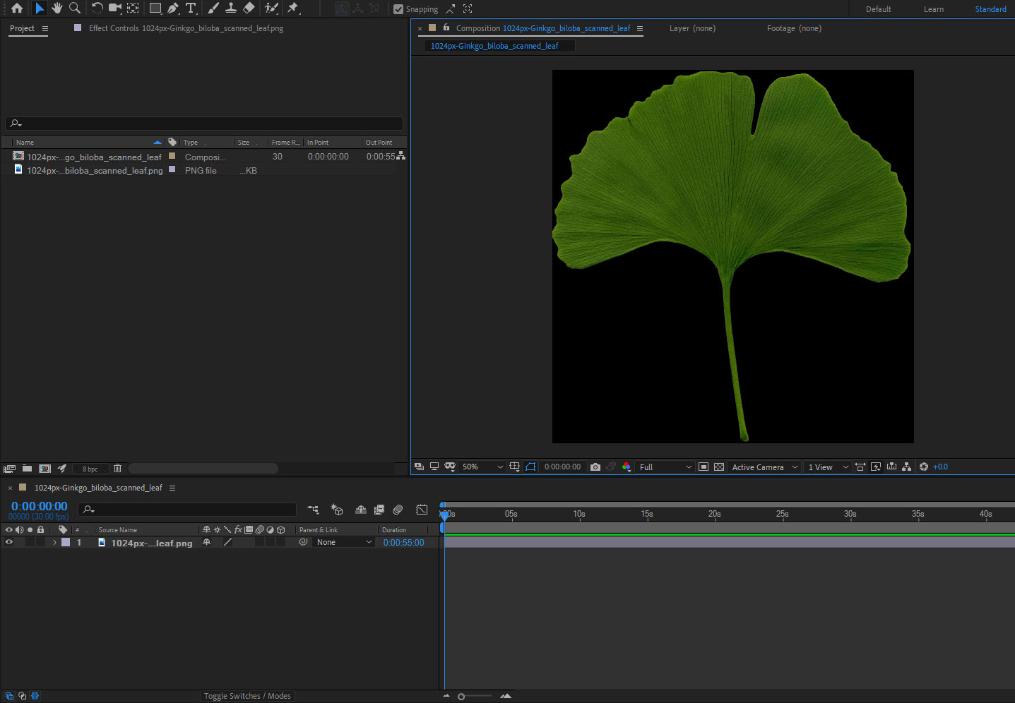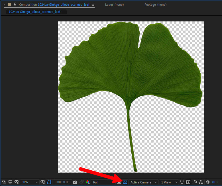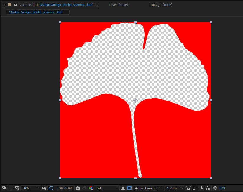 1)컴포지션을 생성하고 투명 영역이 존재하는 png 형식의 이미지를 추가합니다.
