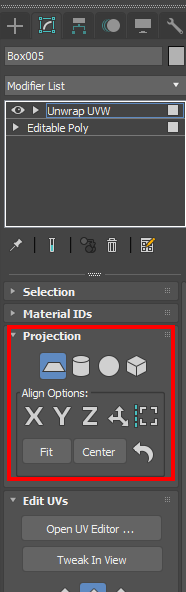 9)unwrap UVW 수정자를 추가하고 projection의 planar유형을 선택한다.