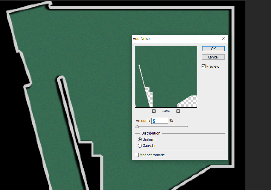 8)건물의 색상 레이어를 선택하고 노이즈를 추가한다(add noise)