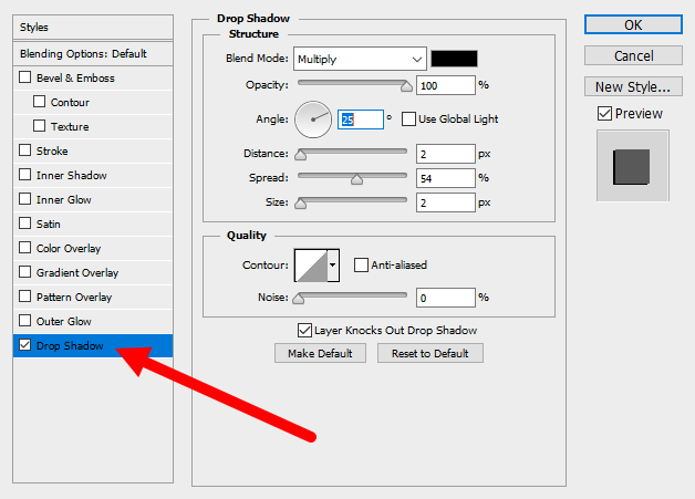 7)drop shadow 레이어 스타일을 설정한다.