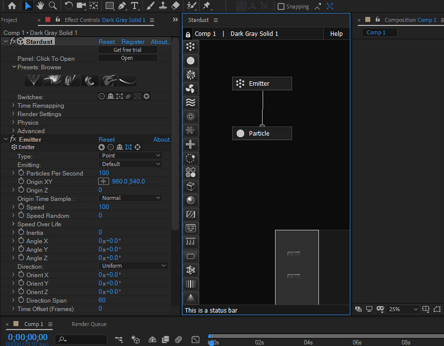 3)또는 플러그인 구성 파일 및 폴더를 직접 에프터이펙트 설치 폴더내의 Plug-ins 폴더에 위치시켜서 설치할 수 있습니다. 예에서 superluminal의 파티클 시스템 플러그인인 stardust를 설치하였습니다.