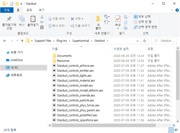 1)일반적으로 에프터이펙트 플러그인의 파일 확장자는 .aex입니다.