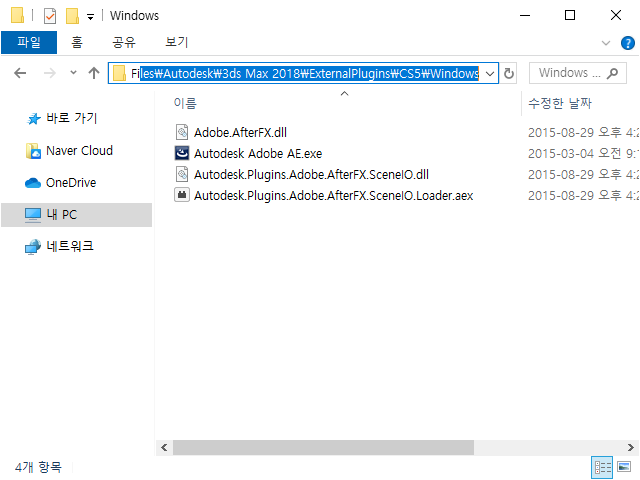 2)위 경로의 두 파일을(Adobe.AfterFX.dll , Autodesk.Plugins.Adobe.AfterFX.SceneIO.dll) 아래 경로에 복사 및 붙여넣기합니다.