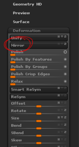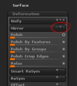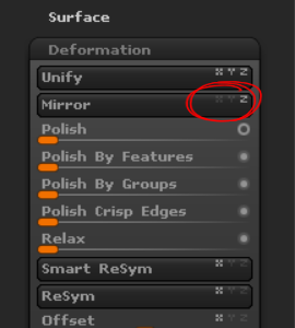 2)tool 팔레트 하단의 deformation에서 mirror를 확인할수있다.