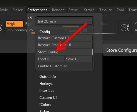 3)store config를 클릭하면 현재 설정을 저장한다.