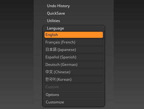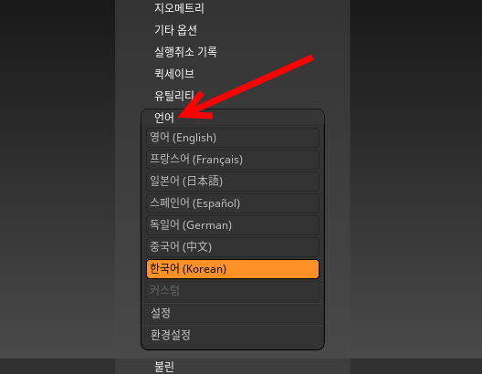 지브러쉬(zbrush)에서 사용자 언어 변경하기