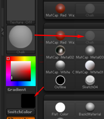 2)오브젝트의 재질로 chalk를 선택합니다. main color에 검정색을 설정합니다.