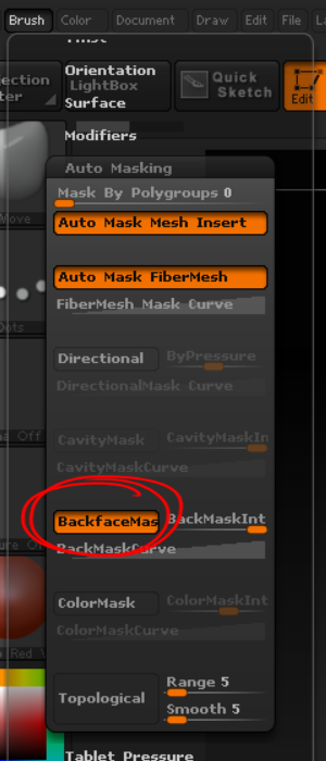 지브러쉬(zbrush)에서 backfacemask(auto masking) 사용하기