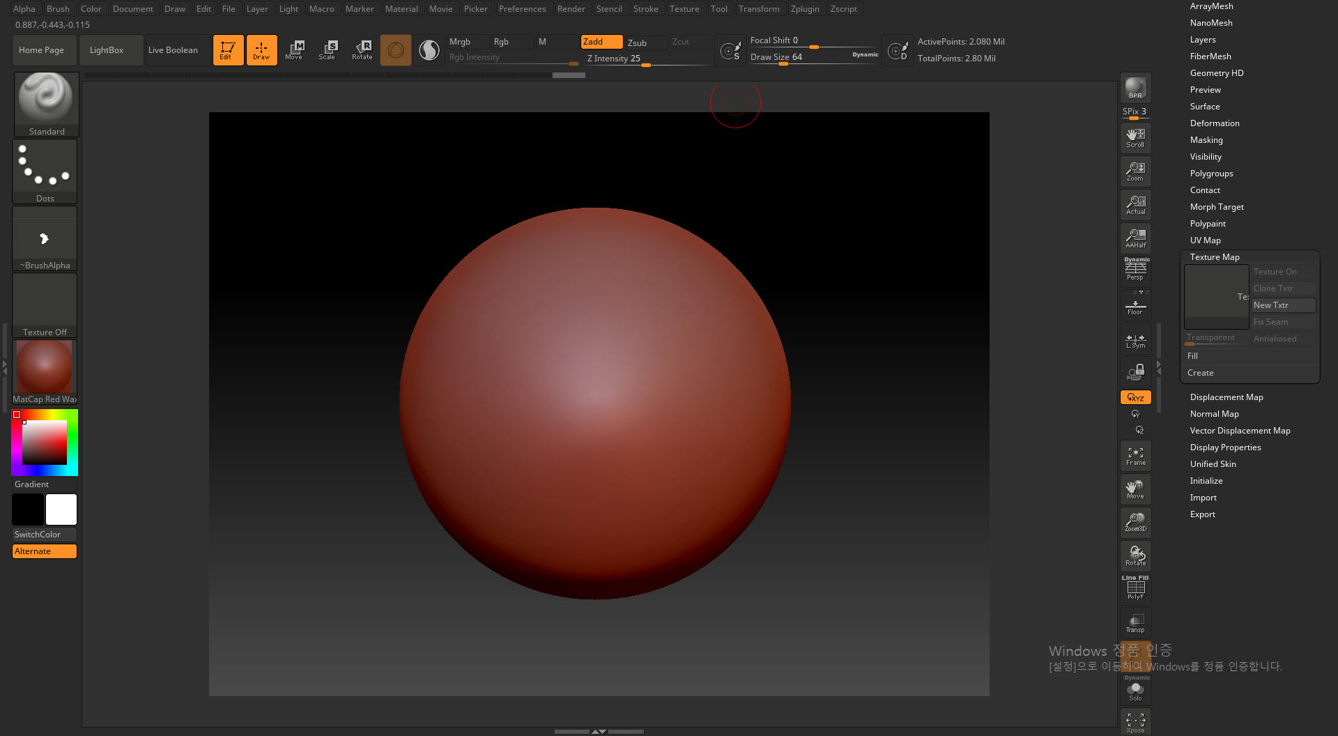 지브러쉬(zbrush)에서 3D오브젝트에 텍스처 맵핑하기