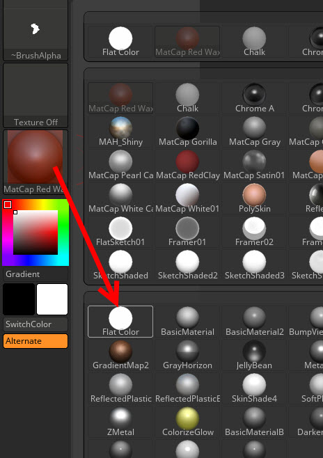 6)재질을 flat color로 변경해서 텍스처를 확인합니다.