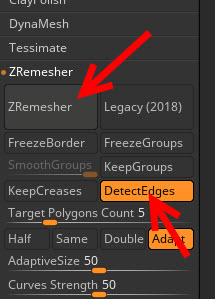 4)detect edges를 활성화한 후에 zremesher를 클릭합니다.