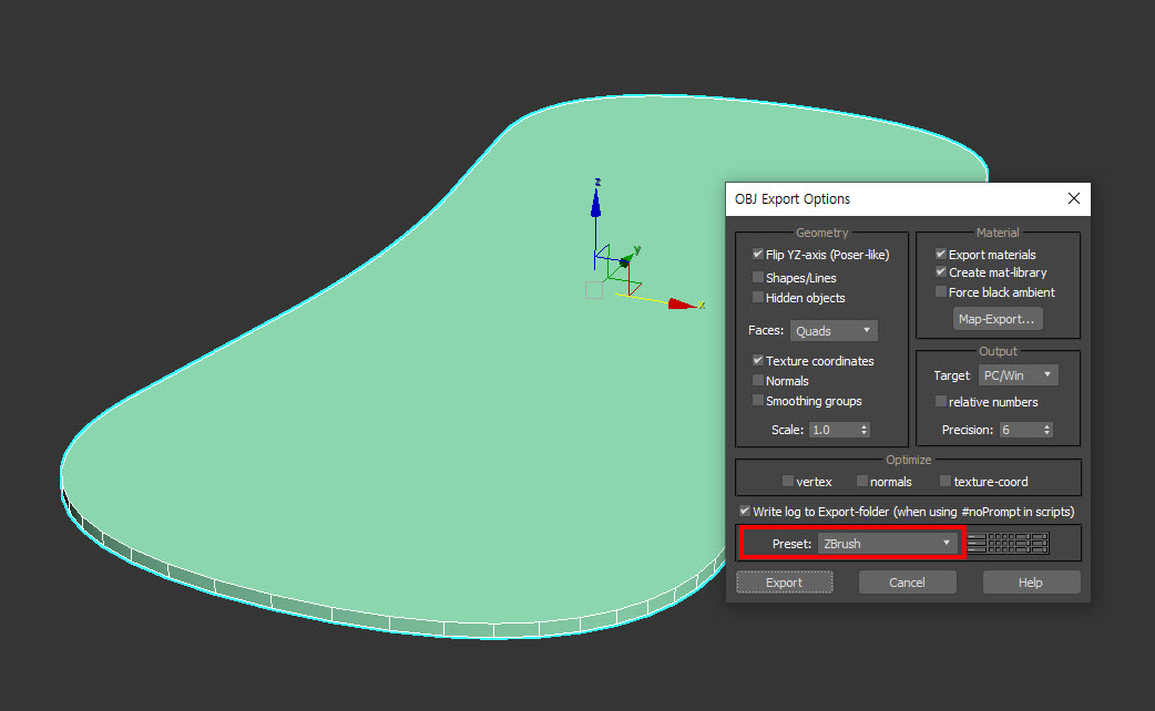 1)3D맥스에서 모델링한 오브젝트를 내보내기합니다(export)