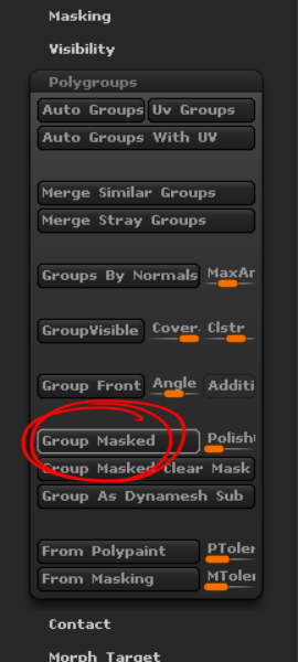 지브러쉬(zbrush)에서 마스킹을 사용하여 폴리그룹 만들기(polygroups, group masked)