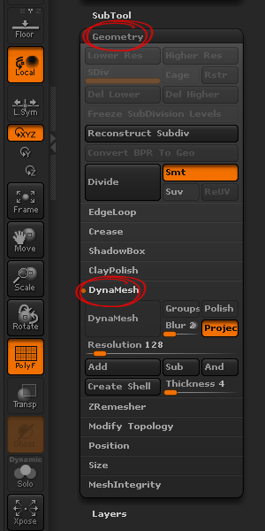 5)Gemoetry의 Dynamesh로 이동합니다.