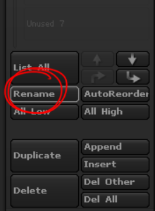 3)decimation master를 이용하기 이전에 유의할것은 subtool의 네임이 모두 달라야한다는것입니다. 동일한 이름의 subtool가 있다면 rename을 이용해서 구분해주어야합니다.