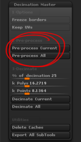 pre-process all는 이 작업을 visible상태인 모든 subtool에 대해서 계산합니다.