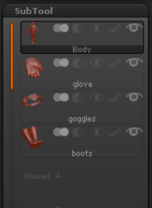 10)export all subtools는 visible상태인 모든 subtool를 하나의 obj파일로 export합니다.
