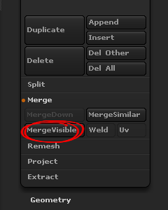 12)subtool의 merge에서 mergevisible을 선택하면 현재 visibility가 on상태인 모든 subtool을 1개로 결합합니다.
