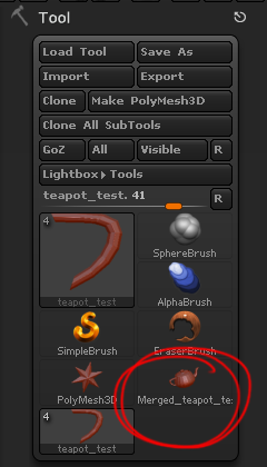 15)새로 생성된 오브젝트에서 4개의 subtool이 결합된것을 확인할수있습니다.