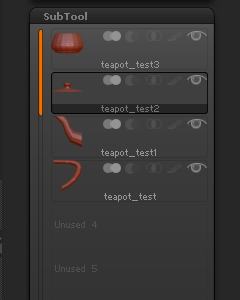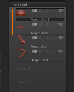 15)새로 생성된 오브젝트에서 4개의 subtool이 결합된것을 확인할수있습니다.