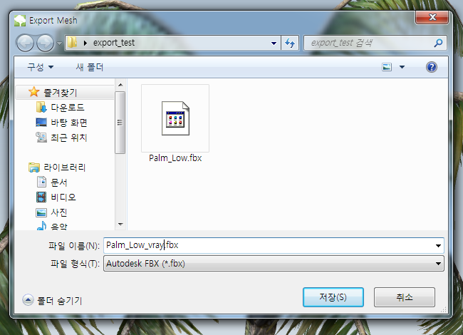 3)파일 형식에서 fbx를 선택하고 저장합니다.