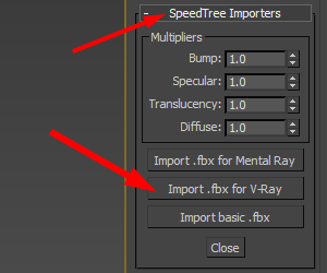 8)speedtree importers에서 import .fbx for V-Ray를 클릭합니다.