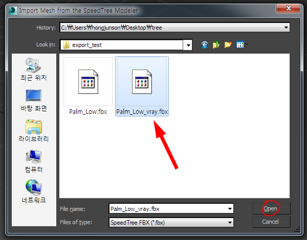 9)스피드트리에서 내보내기한(export) fbx파일을 선택합니다.