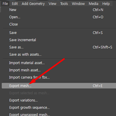 2)상단의 file에서 export mesh를 선택합니다.