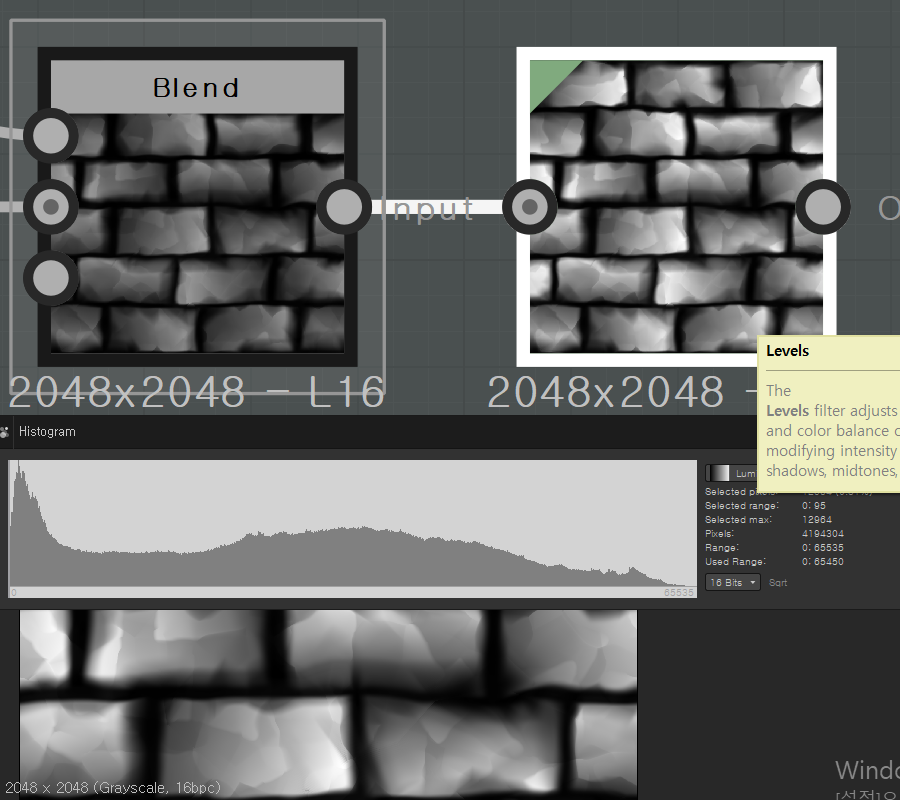 서브스턴스 디자이너(substance designer)에서 레벨 노드(levels)를 이용하여 이미지의 밝기 밸런스 조절하기